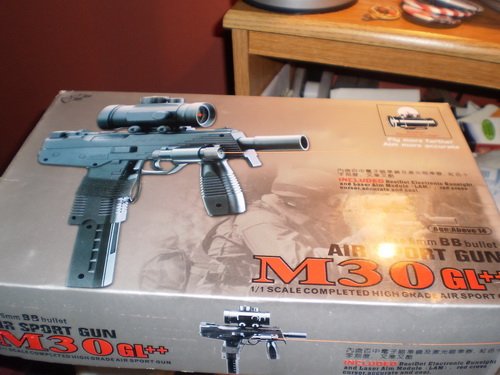 Product DescriptionAIRSOFT BB/PELLET GUN WITH LASER POINTER AND GUNSIGHT. Spring load magazine. Includes 6mm soft BB pellets. Batteries included. Each gift boxed. Size 10" Read more...