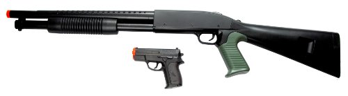 The CYMA SDSCY799 shotgun can fire at 325 FPS with 0.12g BB's and comes with an additional spring pistol sidearm. Read more...