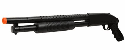 P788 air soft black pump action shotgun. Shoots approximately 190 FPS. Top loader (pellets feed from top of shotgun). Measures approximately 26" in length. Read more...